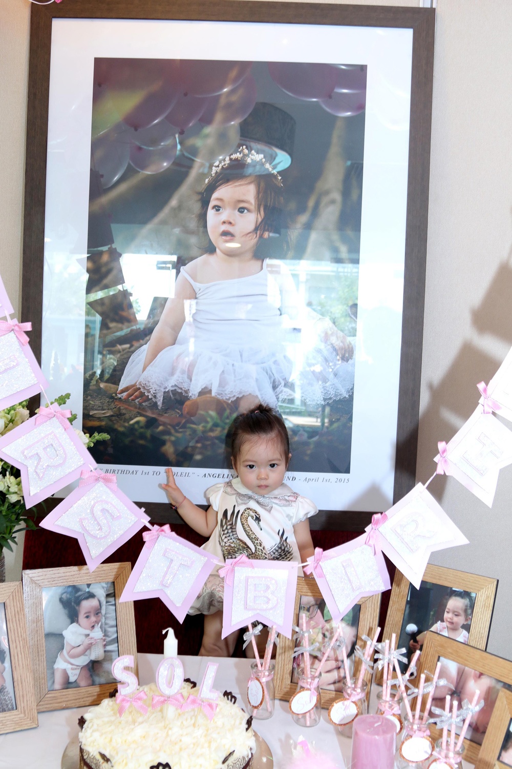 | Những bức ảnh từ lúc mới sinh đến hiện tại của bé Sol được Đoan Trang trưng bày trong tiệc sinh nhật. |