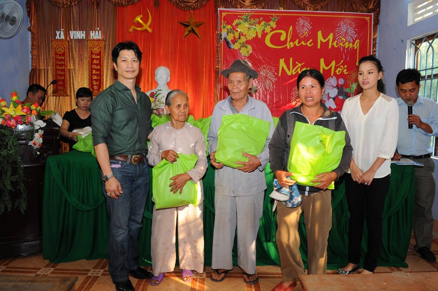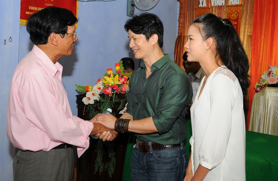 Nam diễn viên và bà xã BeBe Phạm vừa kết thúc hành trình làm từ thiện của đoàn phim "Trúng số" tại xã Vinh Hải, tỉnh Thừa Thiên Huế.