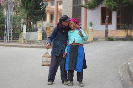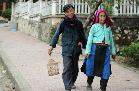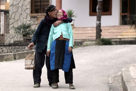 | Đôi vợ chồng dắt tay nhau đầy trìu mến. |