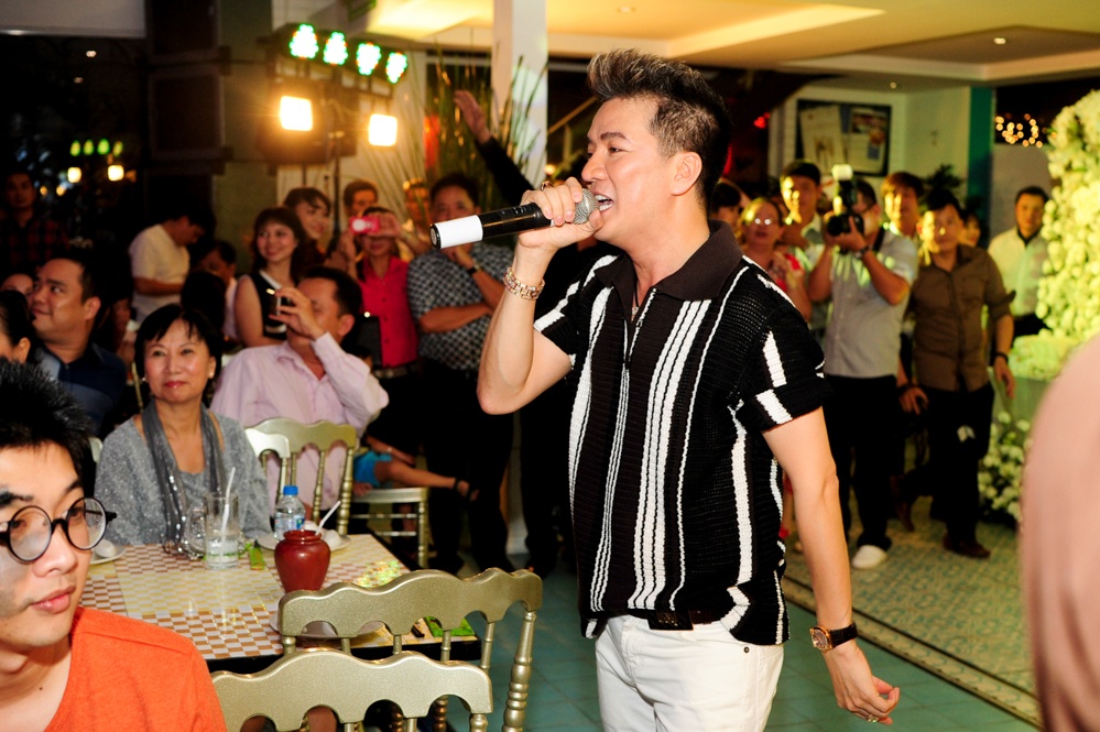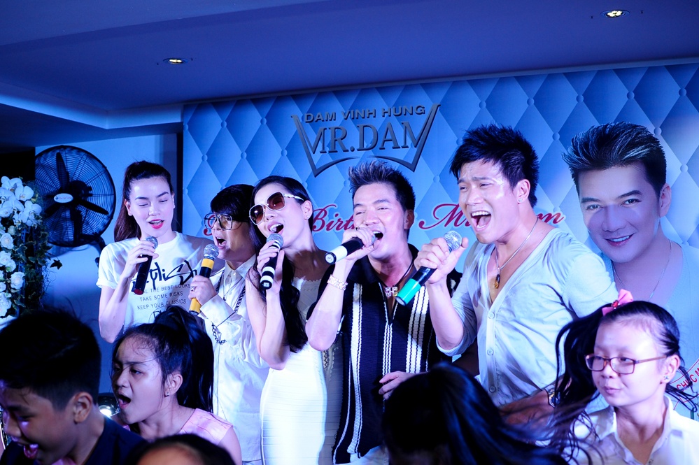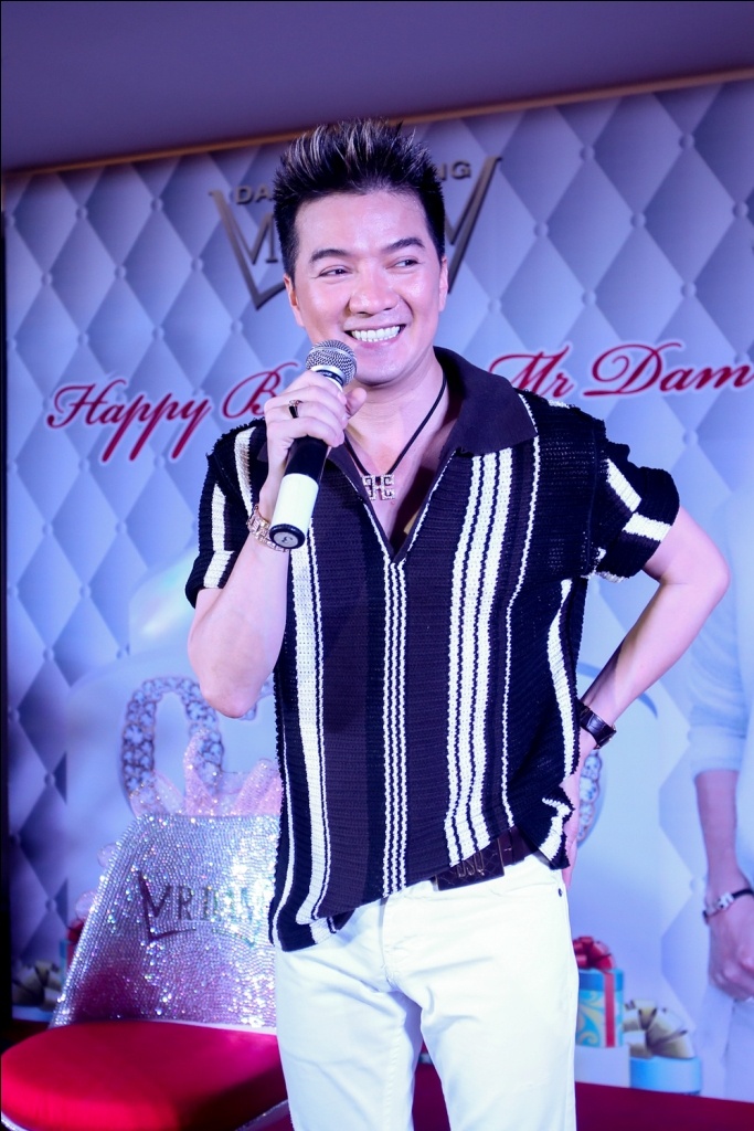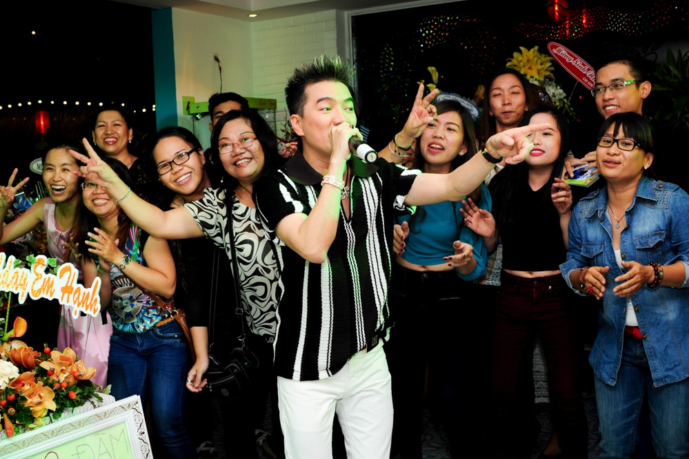 Đến chúc mừng có rất đông bạn bè nghệ sĩ và doanh nhân. Những fan thân thiết, nhất của nam ca sĩ cũng được mời đến chung vui cùng thần tượng. Chia sẻ với khách mời có mặt trong đêm qua, “ông hoàng nhạc Việt” hóm hỉnh rằng do đang rất bận rộn cho chương trình riêng nằm trong chuỗi Mr Dam’s Show nên anh cũng không dự định làm gì cả. Tuy nhiên bạn bè, anh em thân thiết cứ “xúi”, bắt buộc anh tổ chức một đêm mừng tuổi thật tưng bừng.