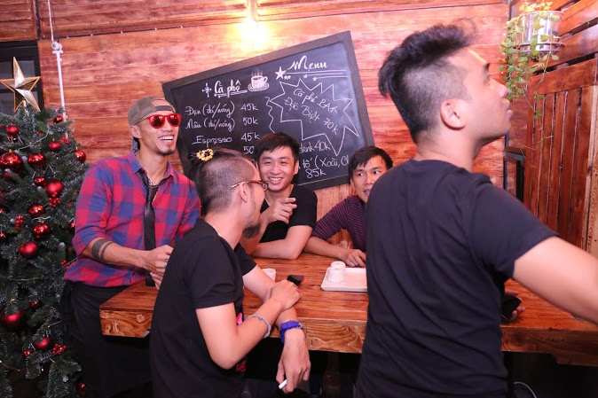 Bạn bè hào hứng đến tham quan quán cà phê mới mở của nam ca sĩ. Trong năm 2016, anh sẽ đẩy mạnh nhiều dự án âm nhạc sau thời gian dài chuẩn bị. |