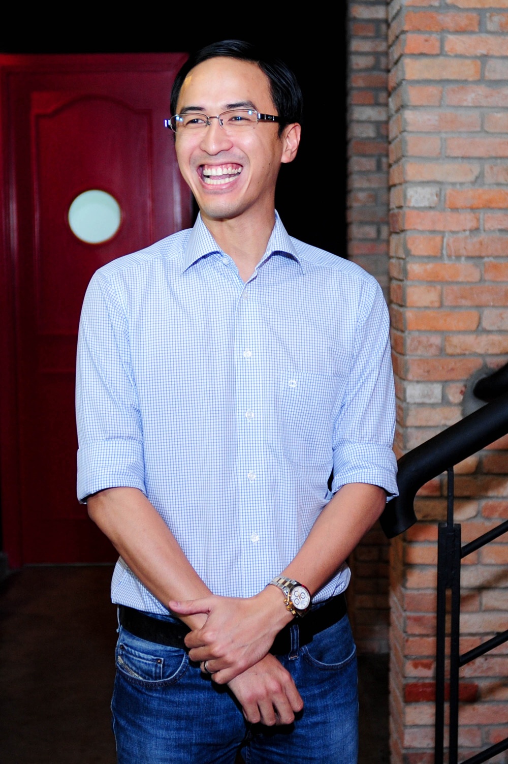 | Louis Nguyễn ngượng ngùng khi phát biểu trước đám đông. Trước khi nói, anh chia sẻ mình nói tiếng Việt không tốt nên ngại. |