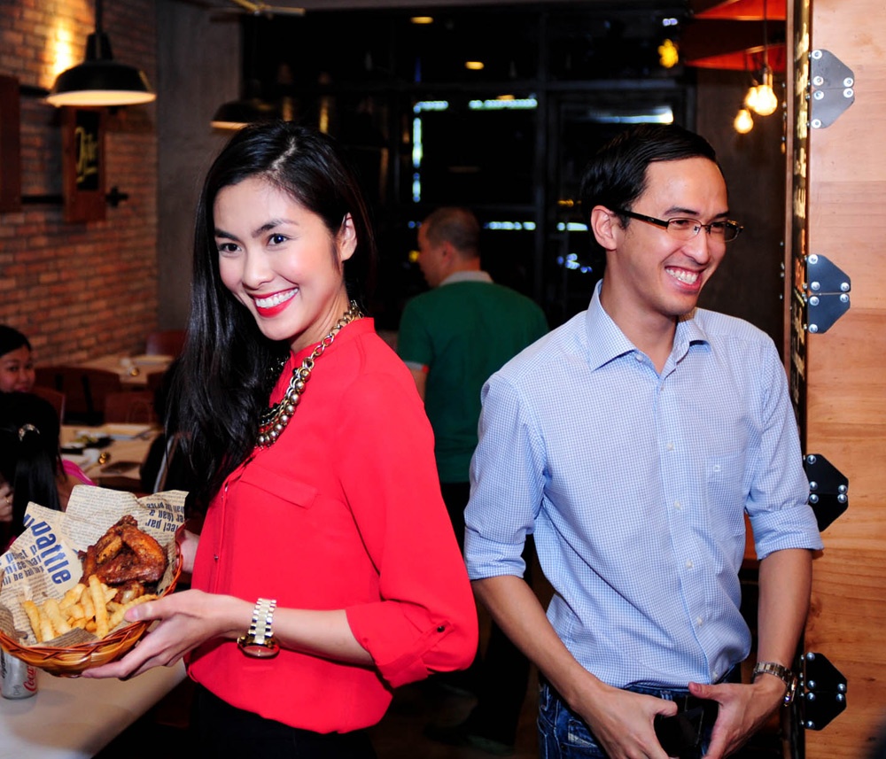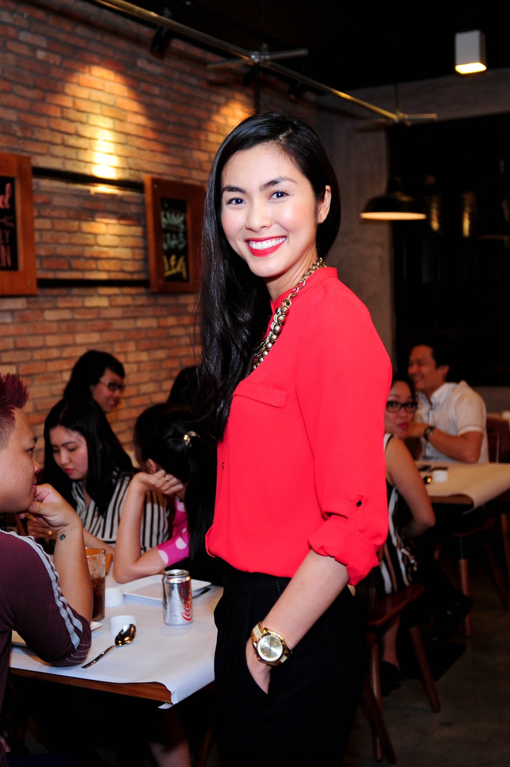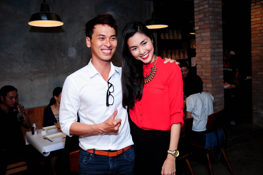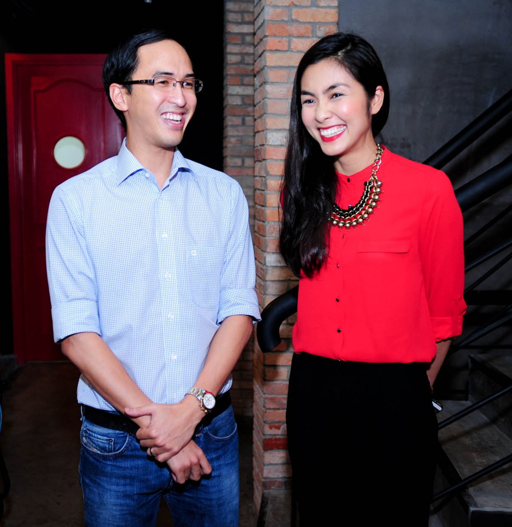Nữ diễn viên Mỹ nhân kế và ông xã doanh nhân luôn cười tươi và thân thiện đón tiếp bạn bè, khách mời. Cả hai nhiệt tình quảng bá những món ăn ngon nhất của nhà hàng. Vì Louis Nguyễn nói tiếng Việt không tốt nên Tăng Thanh Hà luôn đứng bên cạnh cổ vũ tinh thần ông xã khi anh phát biểu.