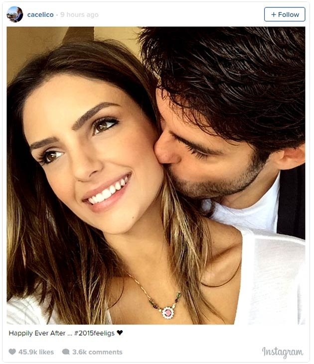 Caroline Celico, vợ của cựu danh thủ Milan – Kaka vừa đăng tải bức ảnh tình tứ cùng chồng trên mạng xã hội Instagram kèm dòng chú thích: “Hạnh phúc mãi mãi, cảm giác ngọt ngào trong năm 2015”.