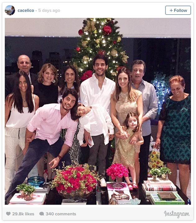 | Gia đình Kaka hạnh phúc trong đêm Giáng sinh 2014. Ảnh: Instagram. |