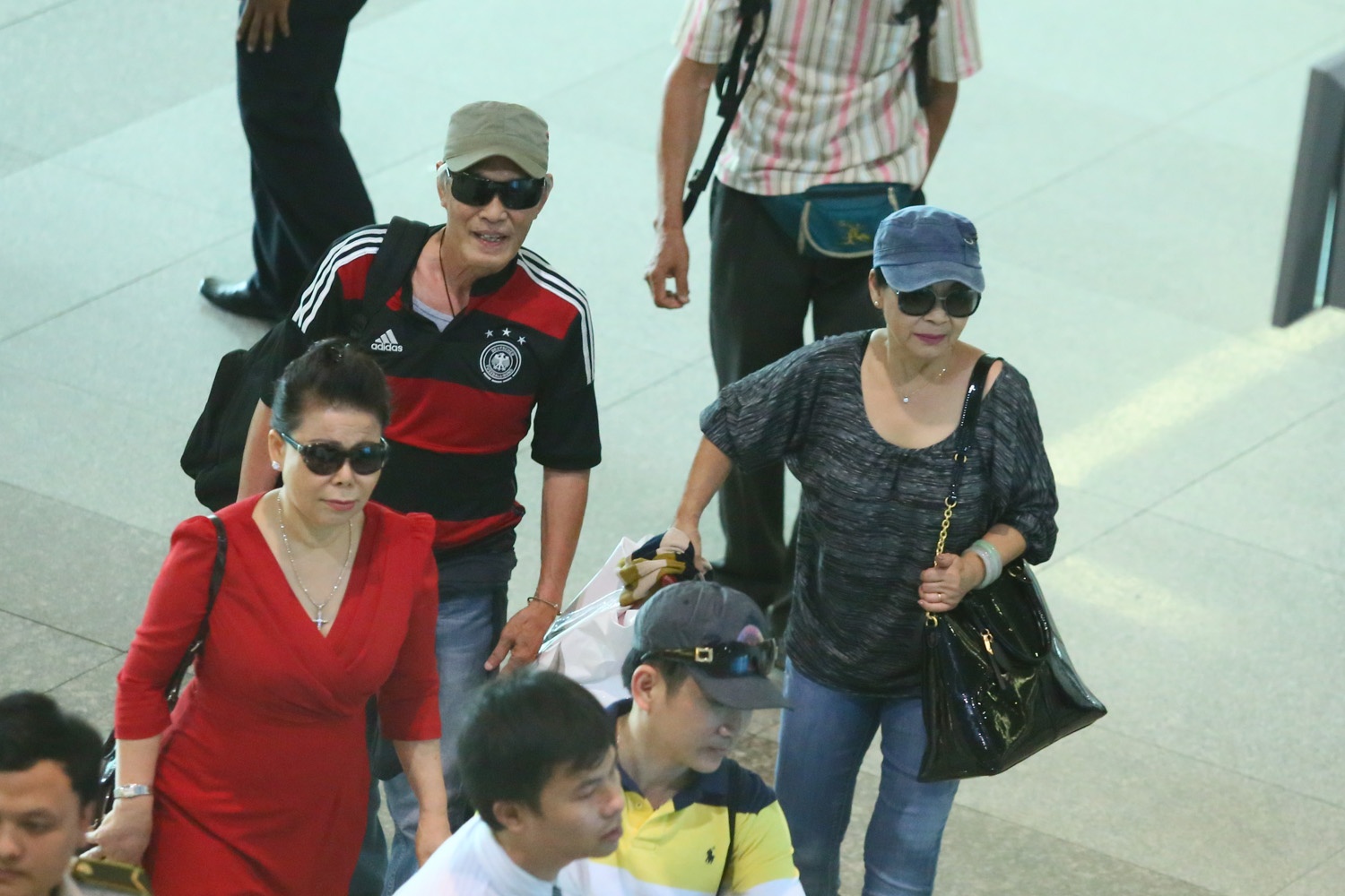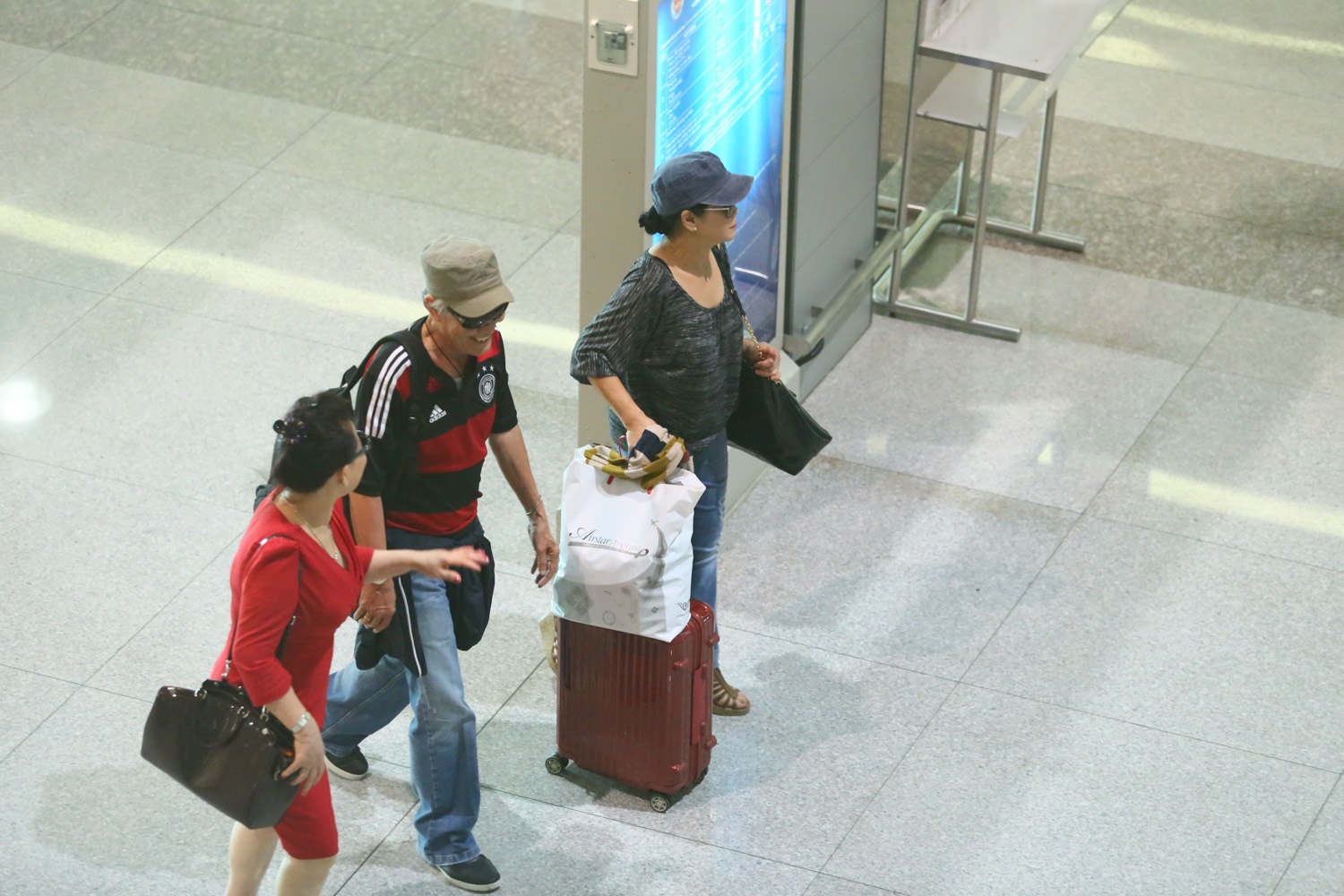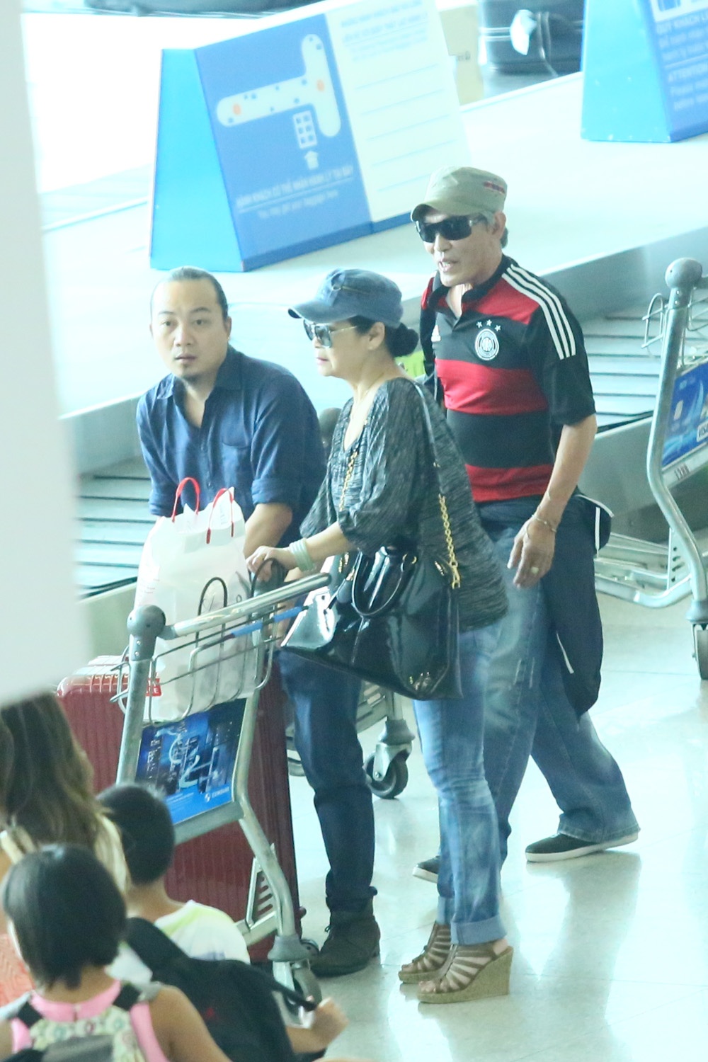 Vợ chồng Khánh Ly gây chú ý ở sân bay Tân Sơn Nhất