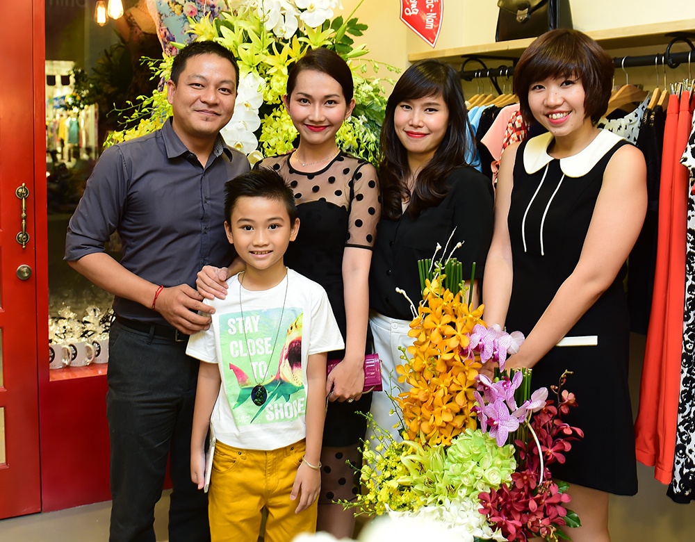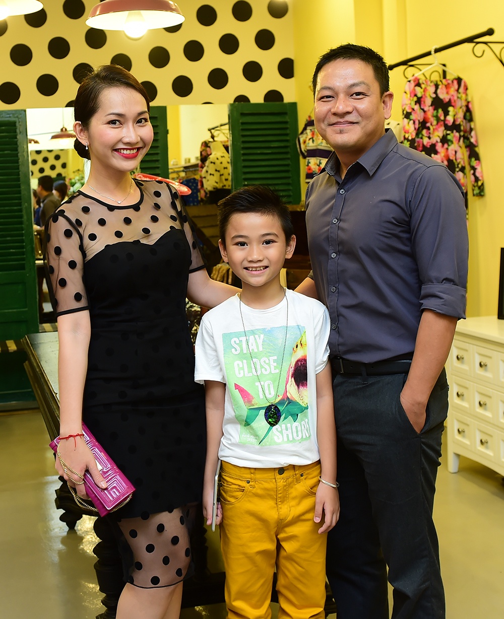 | Có mặt ở buổi khai trương thương hiệu thời trang của hai nhà thiết kế Minh Phúc - Tú Ngô, Kim Hiền diện váy tông đen pha voan trong suốt, chấm bi khá kín đáo và qúy phái. Ông xã cô - anh Andy nhiệt tình tháp tùng vợ và con trai tham dự sự kiện này. Anh vận trang phục đơn giản với sơ-mi và quần jeans tối màu. Cả gia đình xuất hiện hạnh phúc trước những cặp mắt ngưỡng mộ của đông đảo khách mời. |