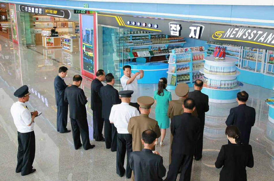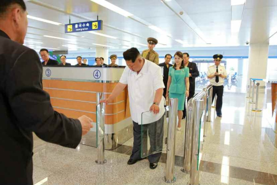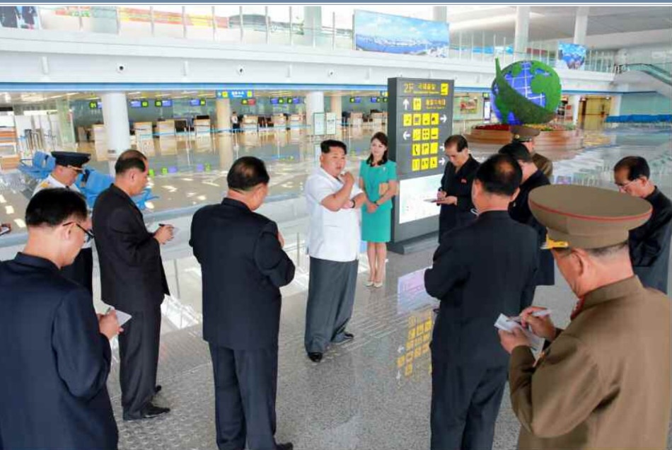 | Ông Kim cùng vợ, đệ nhất phu nhân Ri Sol Ju, tại cổng ra vào của nhà ga số 2. Theo bản tin của hãng thông tấn Triều Tiên KCNA hôm 25/6 nước này bắt đầu xây dựng nhà ga mới - cửa ngõ chính tới Bình Nhưỡng - vào năm 2012. Theo thiết kế, nhà ga mới sẽ dành cho các chuyến bay quốc tế còn nhà ga hiện nay sẽ được sử dụng để phục vụ các chuyến bay nội địa. |