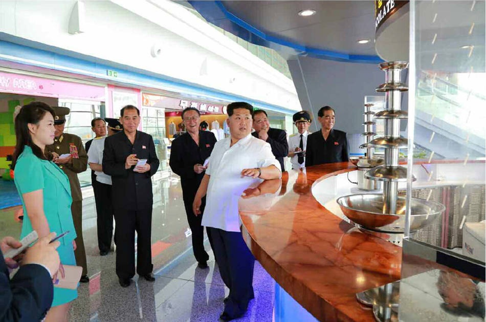 | Ông Kim cùng phu nhân Ri Sol Ju thị sát một nhà hàng trong sân bay. |