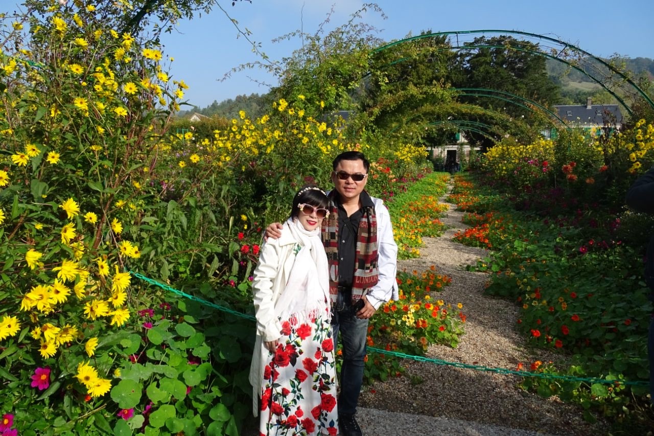 | Vợ chồng Lan Hương tại làng Giverny - một trong những khu vườn được xếp vào danh sách vườn đẹp nhất thế giới. Đây là quê hương của danh họa Pháp - Claude Monet. |
