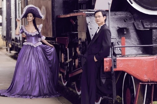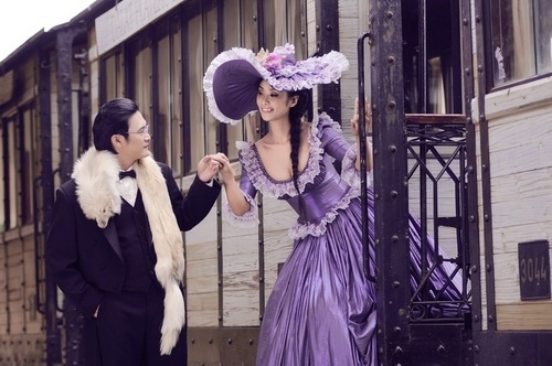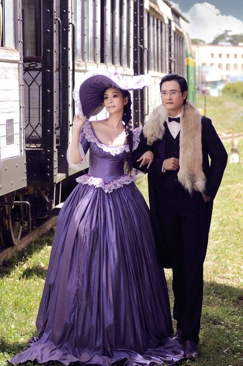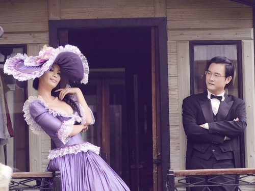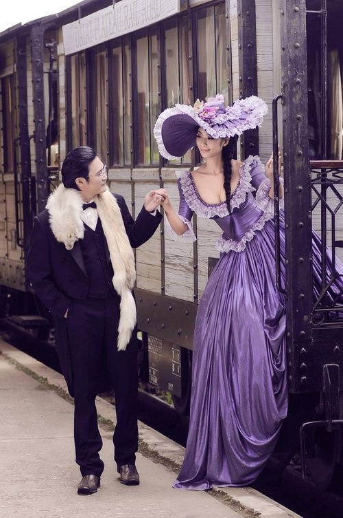 Tuy nhiên, bộ ảnh cô mặc váy cưới màu tím mộng mơ được thiết kế theo phong cách châu Âu cổ điển tình tứ bên chú rể Nguyễn Nhất Huy vẫn khiến người xem ngỡ ngàng nhất. Tâm điểm thu hút sự chú ý lúc này không còn là thế độc tôn của cô dâu, mà đó chính là chú rể Nguyễn Nhất Huy khi anh được so sánh là "bản sao" của Châu Nhuận Phát.