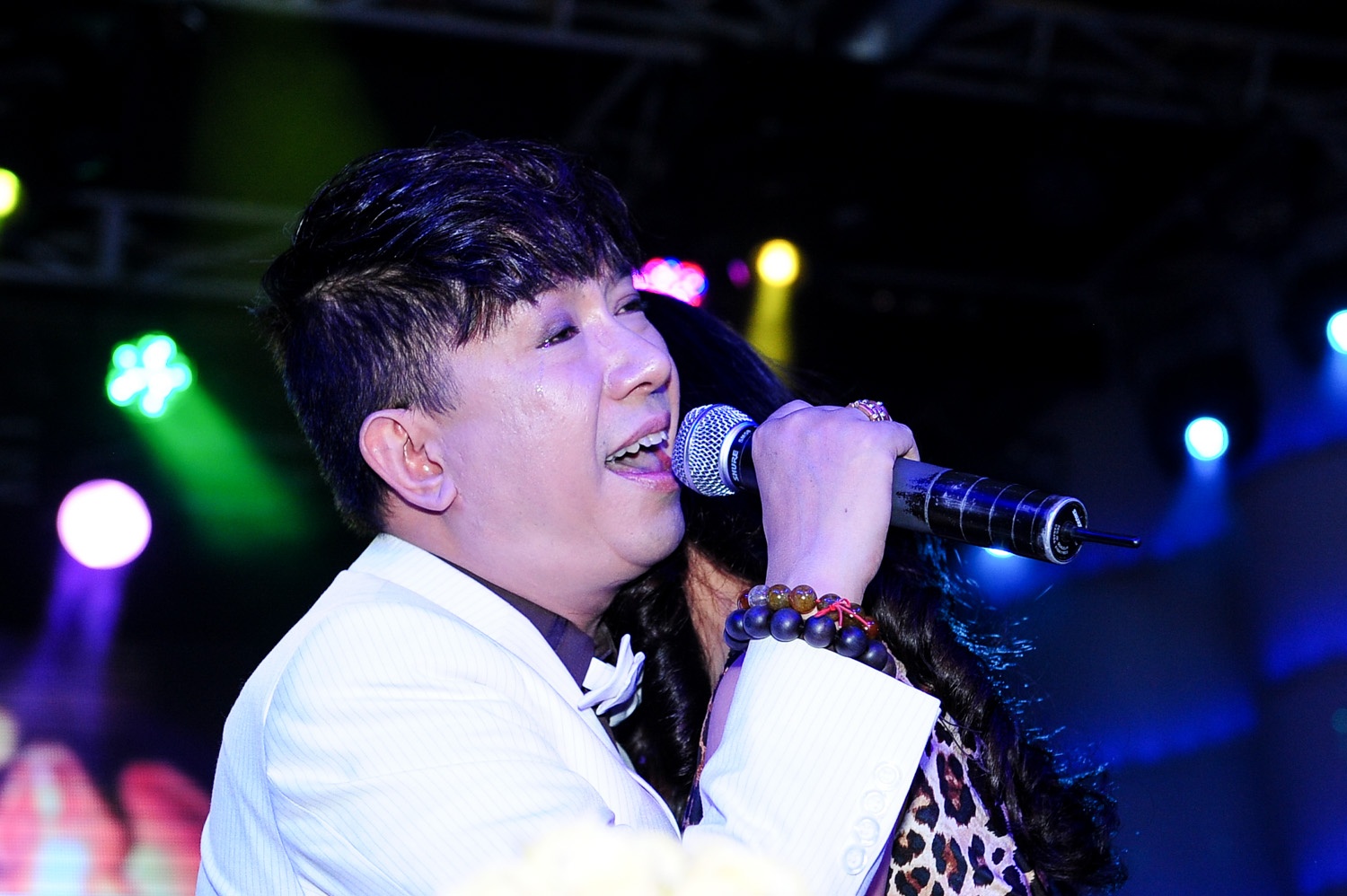 | Để thể hiện tình cảm, vợ Long Nhật mang hoa lên tặng và hôn chồng ngay trên sân khấu. |