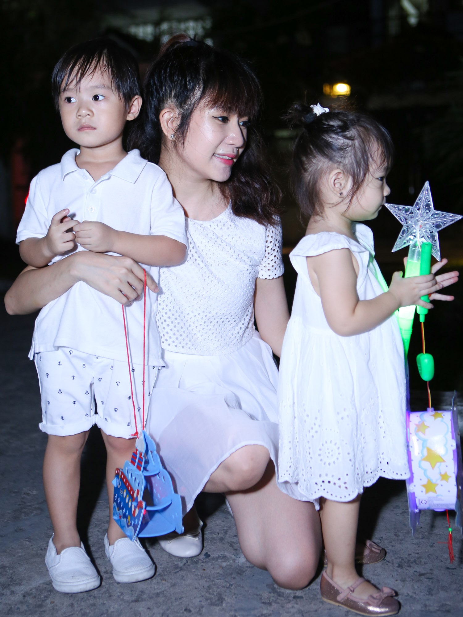 | Minh Hà cho biết, rằm tháng 8 hàng năm, cô và ông xã thường đưa các con rước đèn ở công viên gần khu vực đang sống hoặc phá cỗ cùng hai bên nội ngoại. Song do ông xã bận rộn với công việc nên kết hoạch này không được thực hiện trong mùa trung thu 2015. Thay vào đó, vợ chồng ca sĩ Trọn đời bên em để các con rước đèn ở khu phố gần nhà. |