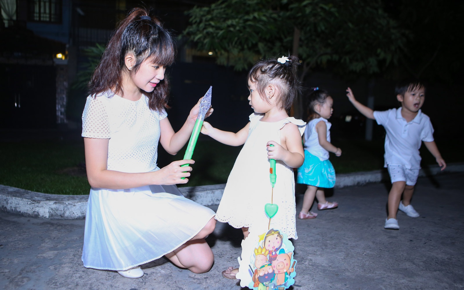 | Cũng do lịch làm việc dày đặc của Lý Hải nên mẹ con Minh Hà phải đợi anh trở về nhà muộn so với dự định. Gia đình nam ca sĩ diện trang phục trắng ton sur ton rất đáng yêu cùng xuống phố đón trung thu. Các nhóc tỳ hí hửng vì được bố mẹ tặng lồng đèn, đưa đi chơi. |