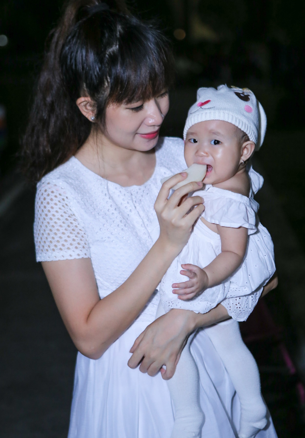 | Chưa thể chạy nhảy cùng anh chị nên Sunny được mẹ bố mẹ bế suốt buổi tối. |