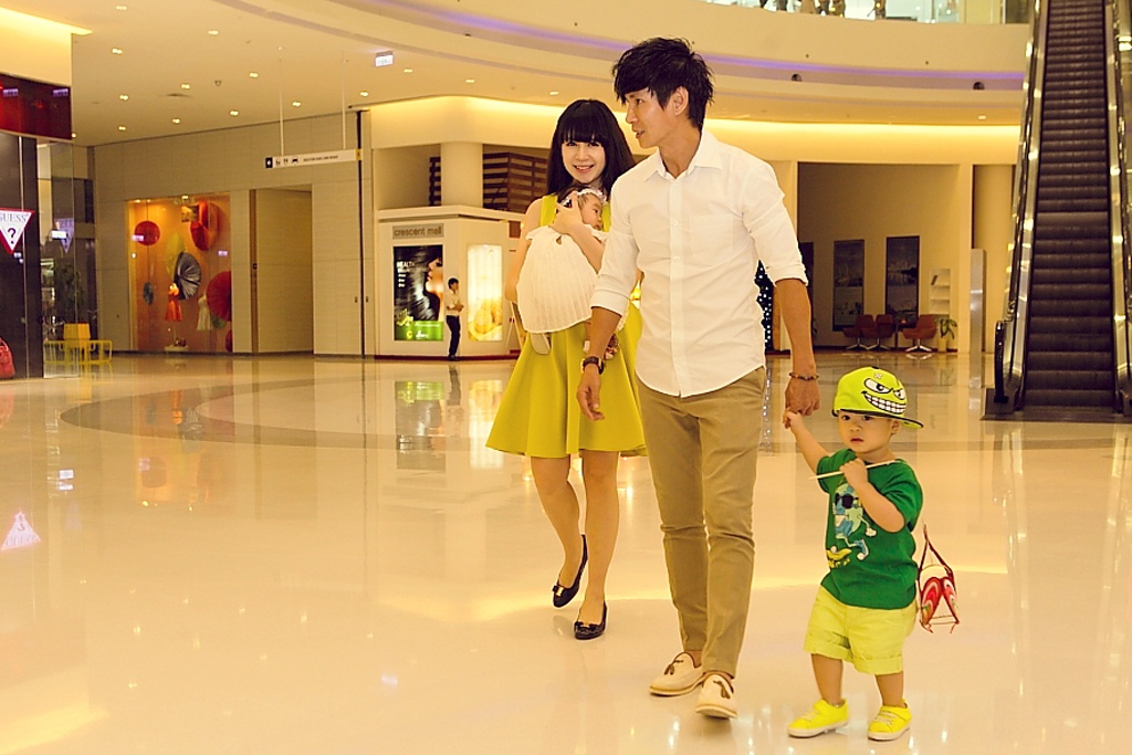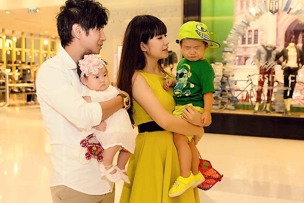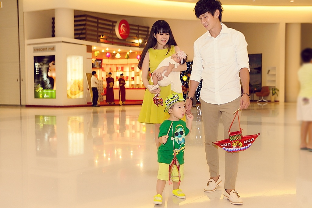 Ngay đêm rằm Trung thu, nam ca sĩ có lịch diễn tại Nha Trang nên anh đã đưa vợ và các con đi dạo chơi đón lễ sớm hơn tại trung tâm mua sắm ở TP.HCM.