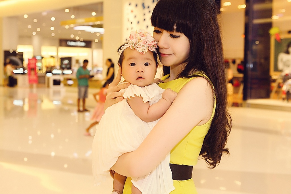 Cherry còn rất nhỏ nên cô bé được mẹ ẵm trên tay.