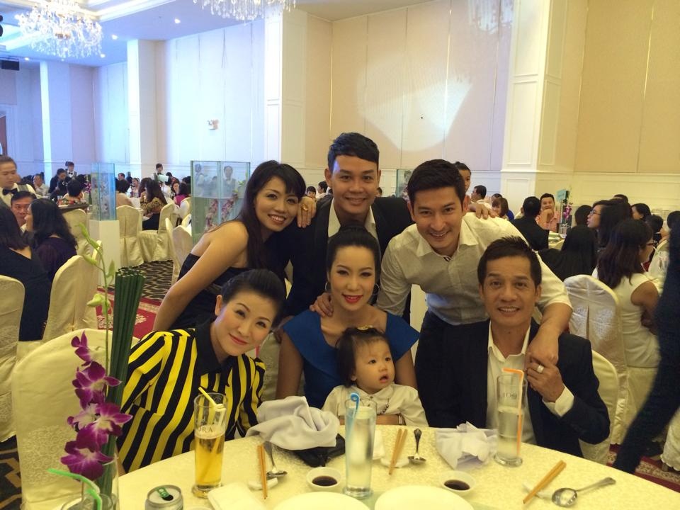 | Trịnh Kim Chi, Huy Khánh, Minh Nhí cùng các diễn viên trẻ trên bàn tiệc chúc mừng hạnh phúc của Quốc Thuận. |