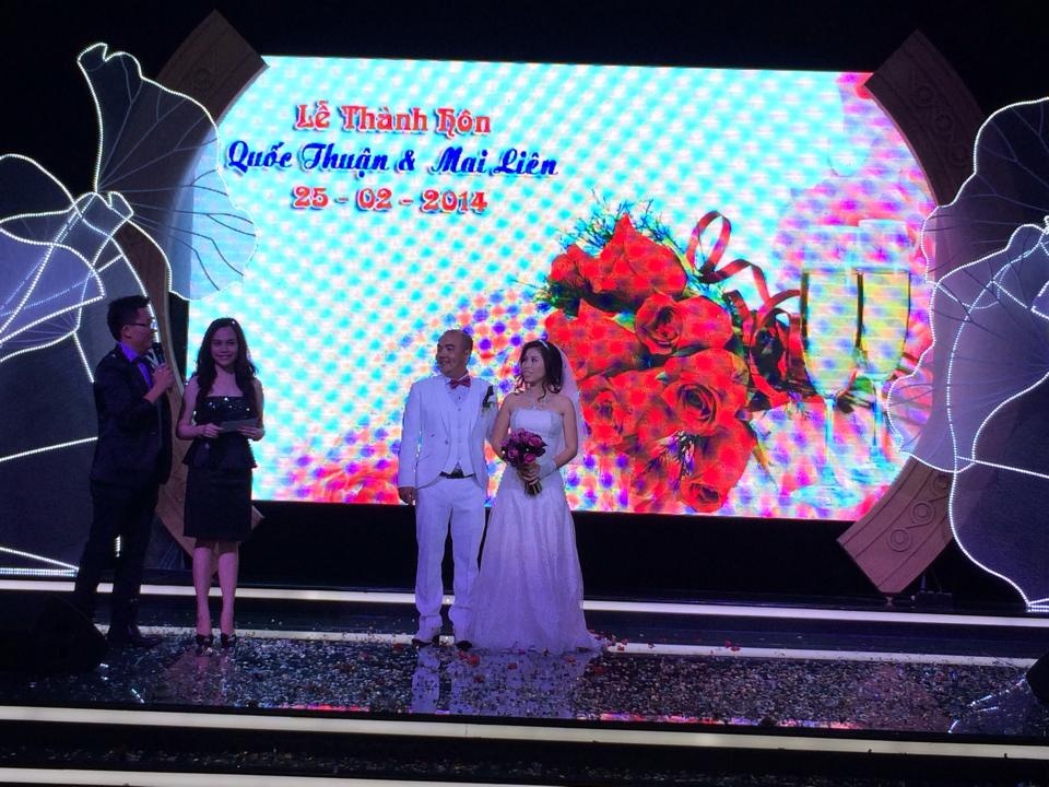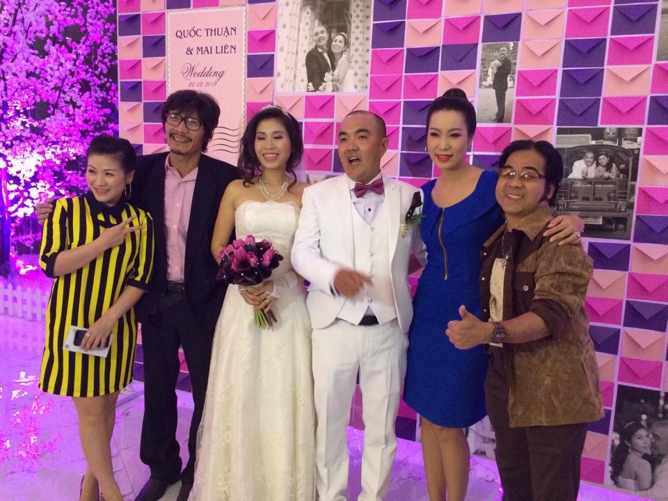 | Tối 25/2, Quốc Thuận - nam diễn viên, MC có biệt danh là Mr. Bin Việt chính thức rước nàng về dinh. Hôn lễ được tổ chức tại một trung tâm tiệc cưới ở quận 5 - TP.HCM. Rất nhiều gương mặt nổi tiếng của Vbiz đều có mặt trong sự kiện này. Vợ chồng Lý Hải - Minh Hà đến từ sớm và chụp hình để đăng tải trên trang cá nhân với lời chúc mừng vợ chồng Quốc Thuận - Mai Liên. Khi chia sẻ bức hình này, gia đình nam ca sĩ Trọn đời bên em dí dỏm chú thích: "Cuối cùng thì đứa em của mình cũng theo vợ bỏ cuộc chơi. Chúc vợ chồng diễn viên Quốc Thuận trăm năm hạnh phúc". |