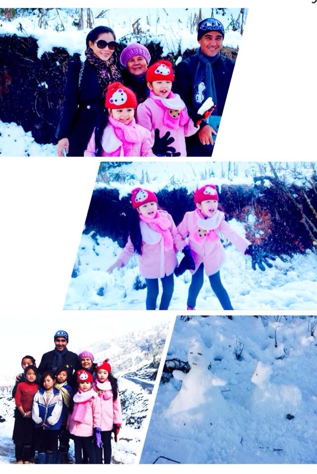 | Vài giờ trước, bà xã của MC Quyền Linh chia sẻ hình ảnh cả gia đình cùng đi du lịch ở Sapa. Dạ Thảo - vợ của MC chương trình Vượt qua thử thách, Làm giàu không khó... cho biết: "Đây là lần đầu 2 bé nhà em thấy tuyết nên thích lắm chị ạ! Chúng chơi hàng giờ với tuyết mà không biết lạnh và chán". Theo chị, đây là kỳ nghỉ thú vị đối với cả gia đình. Chỉ vài giờ sau khi được chia sẻ, hàng trăm lượt bạn bè và người hâm mộ Quyền Linh cũng như gia đình nhỏ của anh đồng loạt "like" và đưa ra nhiều bình luận dễ thương cho bức hình. |