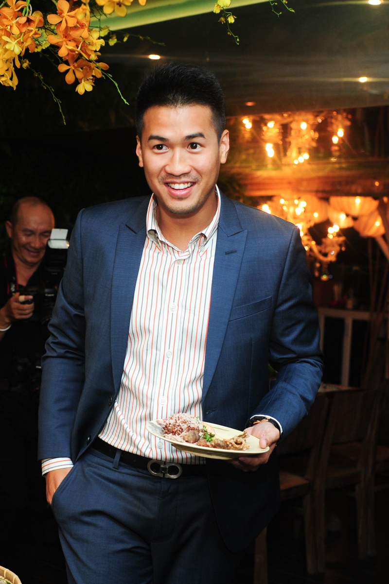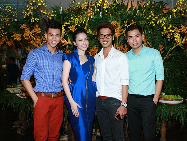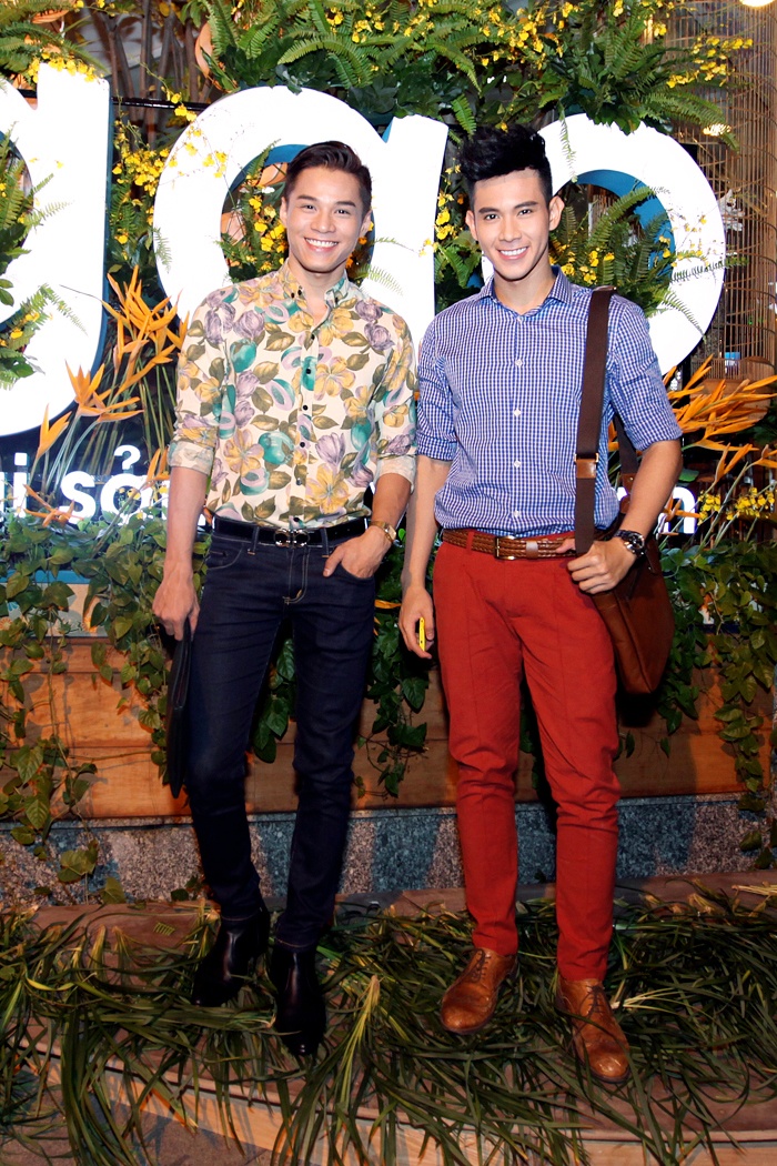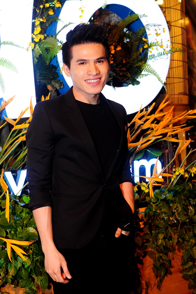 | Đàm Quang Phúc (trái) thí sinh bị Nam Trung sỉ nhục ở casting Next Top Model cũng góp mặt ở buổi tiệc. |