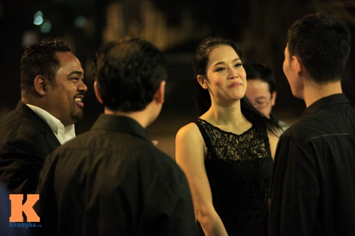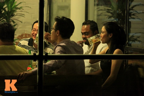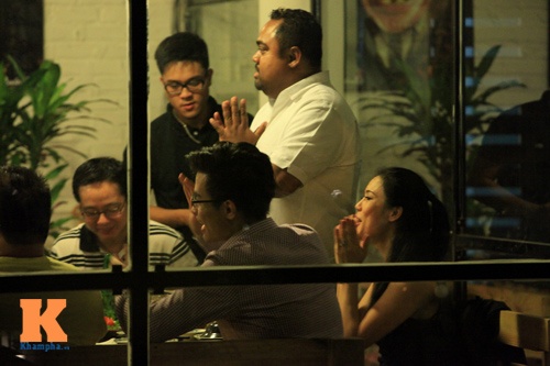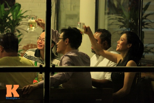 | Dù khá muộn và mệt mỏi sau đêm diễn nhưng hai vợ chồng ca sĩ Đêm nằm mơ phố vẫn đến một quán ăn để gặp gỡ bạn bè cũ của Thu Phương tại Hà Nội và ekip thực hiện liveshow. |