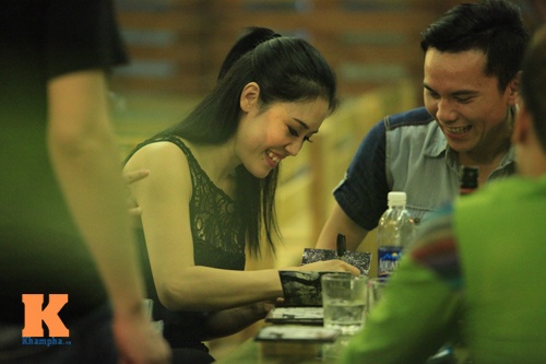 | Thu Phương rạng ngời như thủa đôi mươi khi được gặp gỡ những người bạn tri kỷ một thời. Nữ ca sĩ tận tay ký lên đĩa CD mới nhất của mình tặng cho bạn bè và người hâm mộ. |