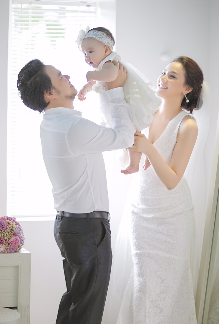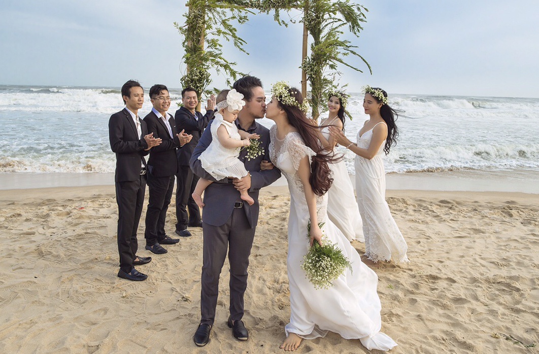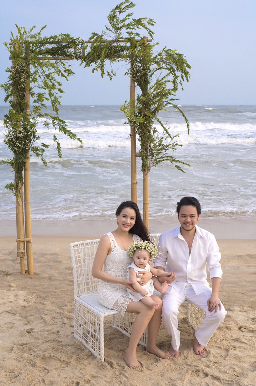 Vợ chồng Trang Nhung chụp ảnh cưới cùng con gái ở biển