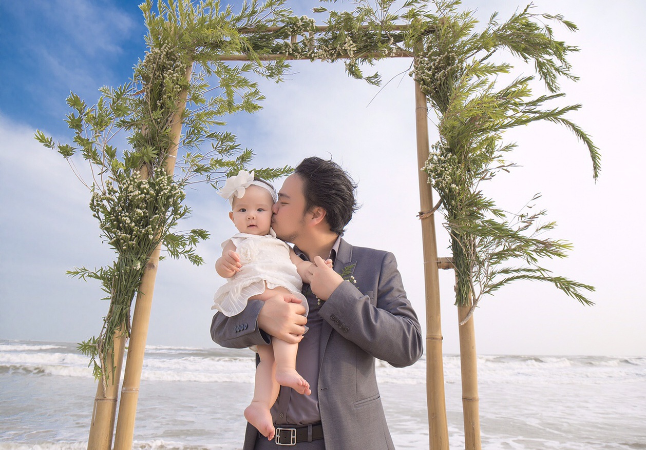 | Sau hôn lễ diễn ra vào ngày 18/1 tại TP HCM, vợ chồng Trang Nhung giới thiệu bộ ảnh cưới chụp cùng con gái Vani ở bờ biển Long Hải (Vũng Tàu). |