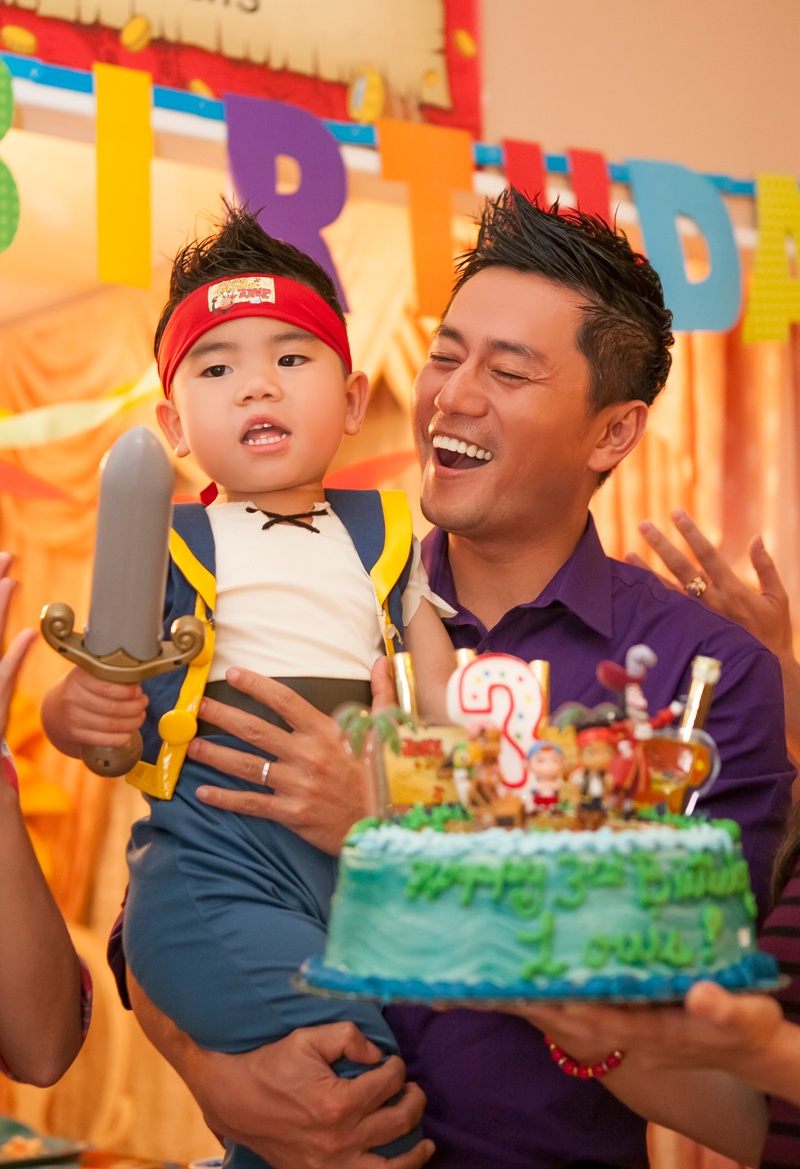 Nam diễn viên vẫn được ví như Jang Dong Gun Việt bởi vẻ ngoài bảnh bao và vợ đã cầu kỳ tổ chức một bữa tiệc theo đúng phong cách Jake and the Neverland pirates - series hoạt hình thu hút vô số khán giả nhí.