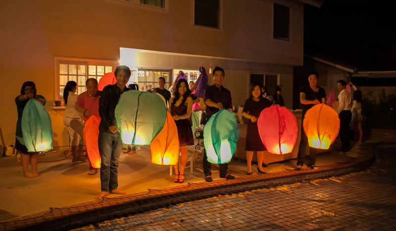 Tất cả cùng rủ nhau thả đèn hoa đăng.