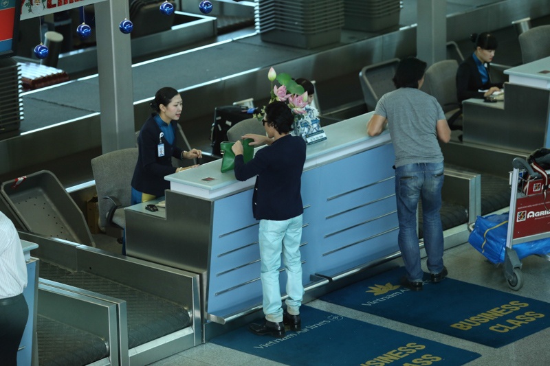 | Trần Bảo Sơn tới quầy check in làm thủ tục trước. |