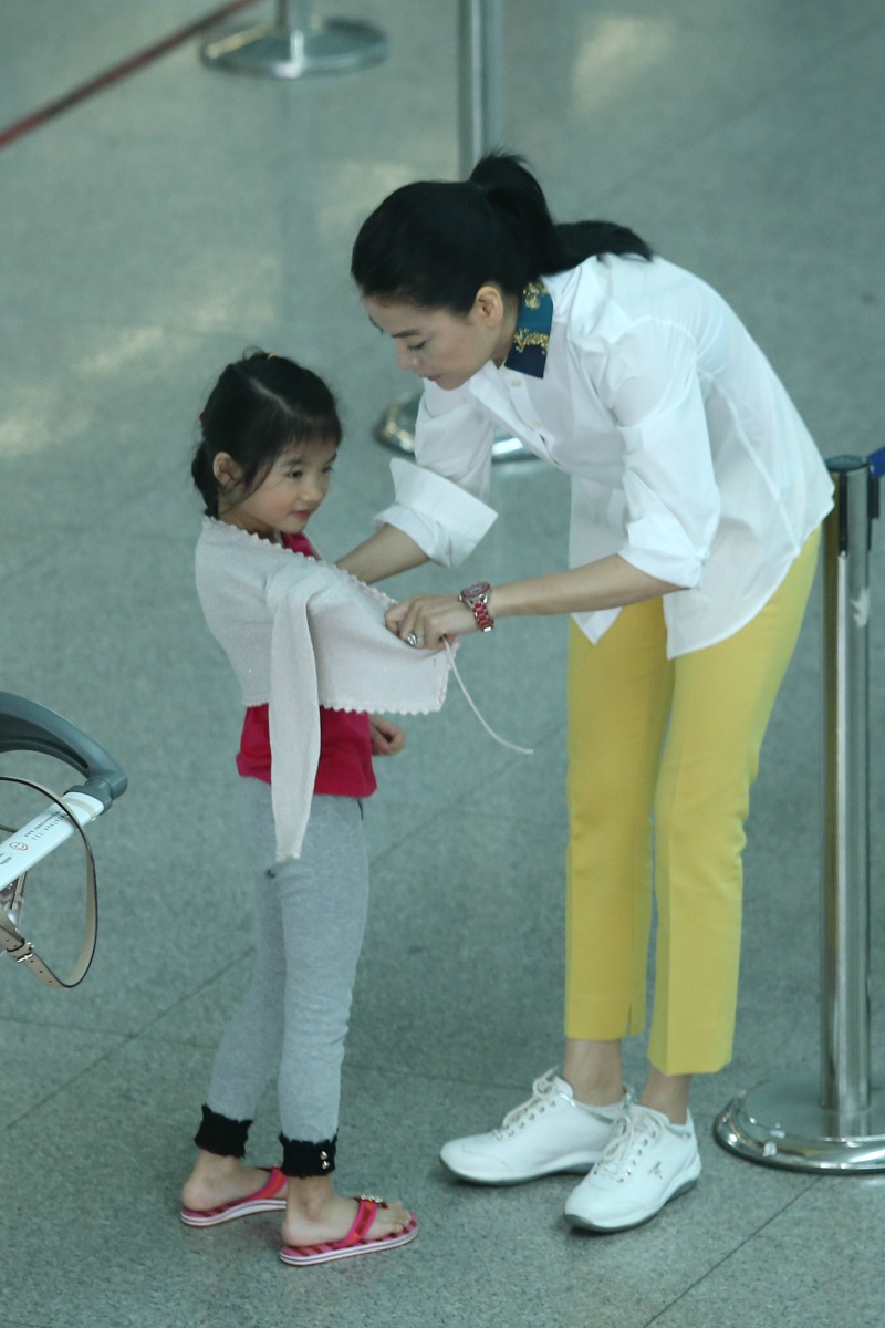 | Trương Ngọc Ánh mặc áo khoác nhẹ cho con gái. Cô vừa kết thúc những cảnh quay cho phim Hương ga tại Nam Định, Hạ Long. |