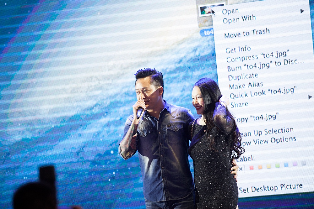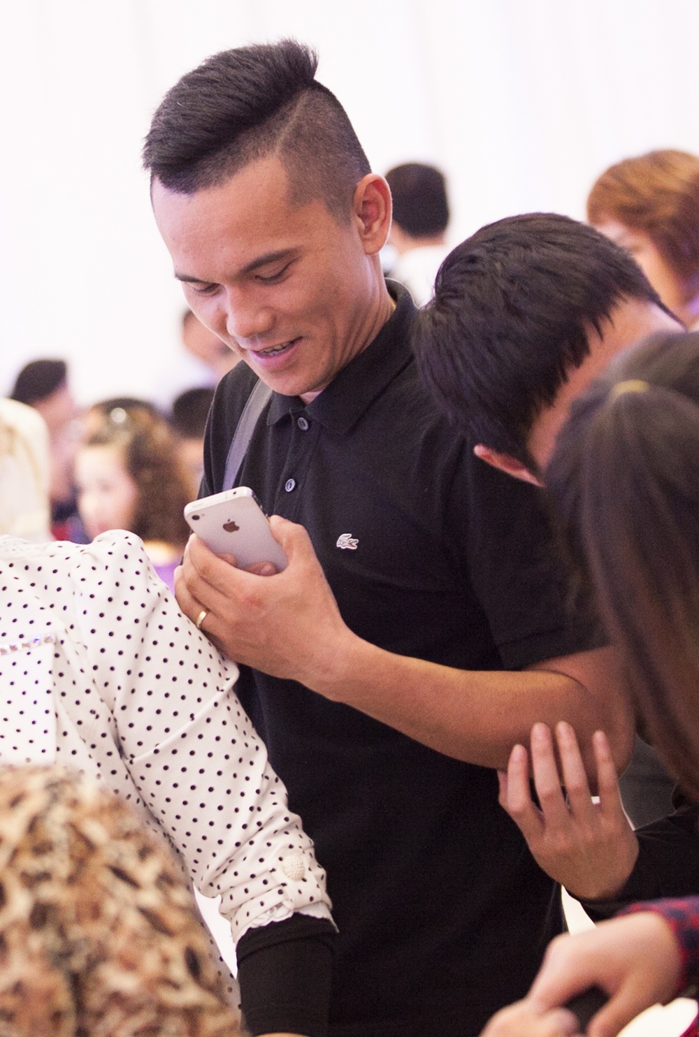 | Tuấn Hưng cưng nựng con trai yêu trong buổi tiệc. |