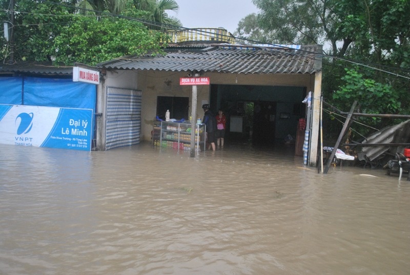 | Hàng trăm hộ dân ở các xã Tân Trường, Trúc Lâm, Hải Thượng, Xuân Lâm… đang bị nước lũ chia cắt, trong đó có gần 10 hộ ở xã Tùng Lâm đang bị ngập đến nóc nhà. |