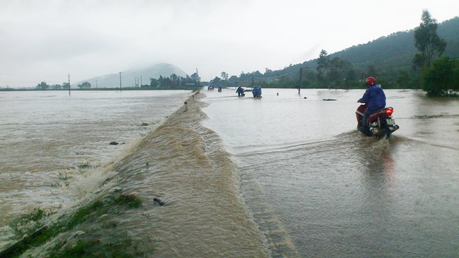 | Rạng sáng nay 1/10, hai hồ đập lớn nhất huyện Tĩnh Gia (Thanh Hóa) là hồ Đồng Đáng (xã Trường Lâm) và Khe Luồng (xã Tân Trường) có dung tích chứa hơn 600.000 m3 nước đã bị vỡ. Kết hợp với việc xả lũ ở hồ Kim Giao khiến hàng trăm hộ dân vùng hạ du bị nước lũ nhấn chìm, quốc lộ 1A đang bị ngập lụt, hình thành xoáy nước sâu hơn 1m. |