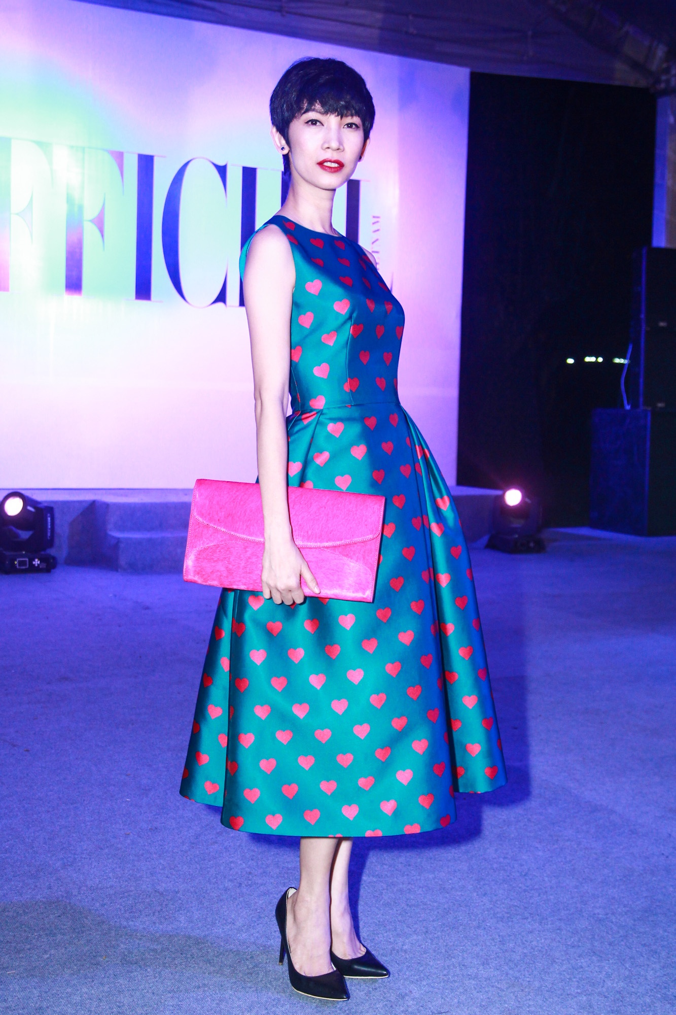 | Tối 4/11, Thủy Tiên - bà xã ca sĩ Đan Trường - tham dự buổi ra mắt tạp chí tại TP HCM. Nữ doanh nhân 31 tuổi một mình dự sự kiện chứ không đồng hành cùng ông xã như mọi khi. |