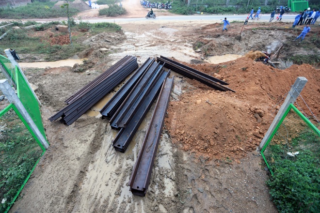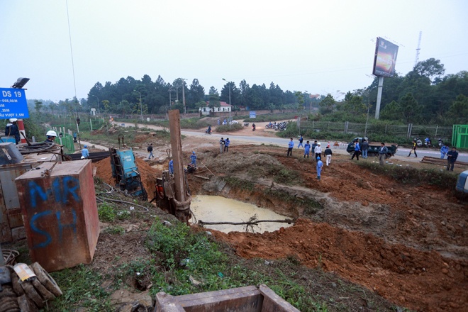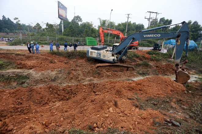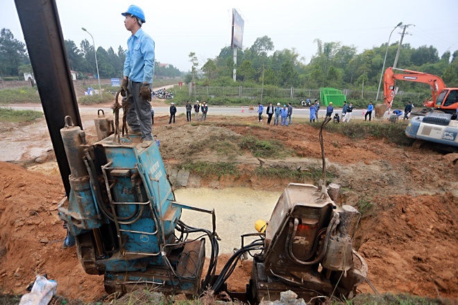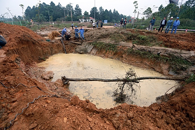 | Đất được đào lên để khẩn trương khắc phục sự cố. |