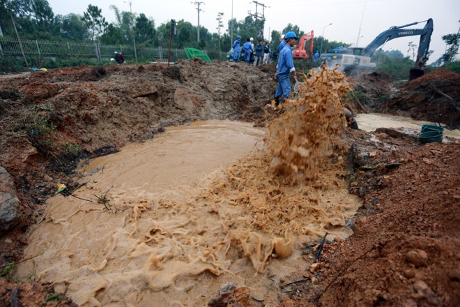 Sự cố vỡ đường ống nước làm ảnh hưởng đến 70.000 hộ dân phía Tây Nam Hà Nội.