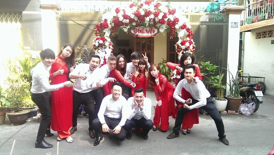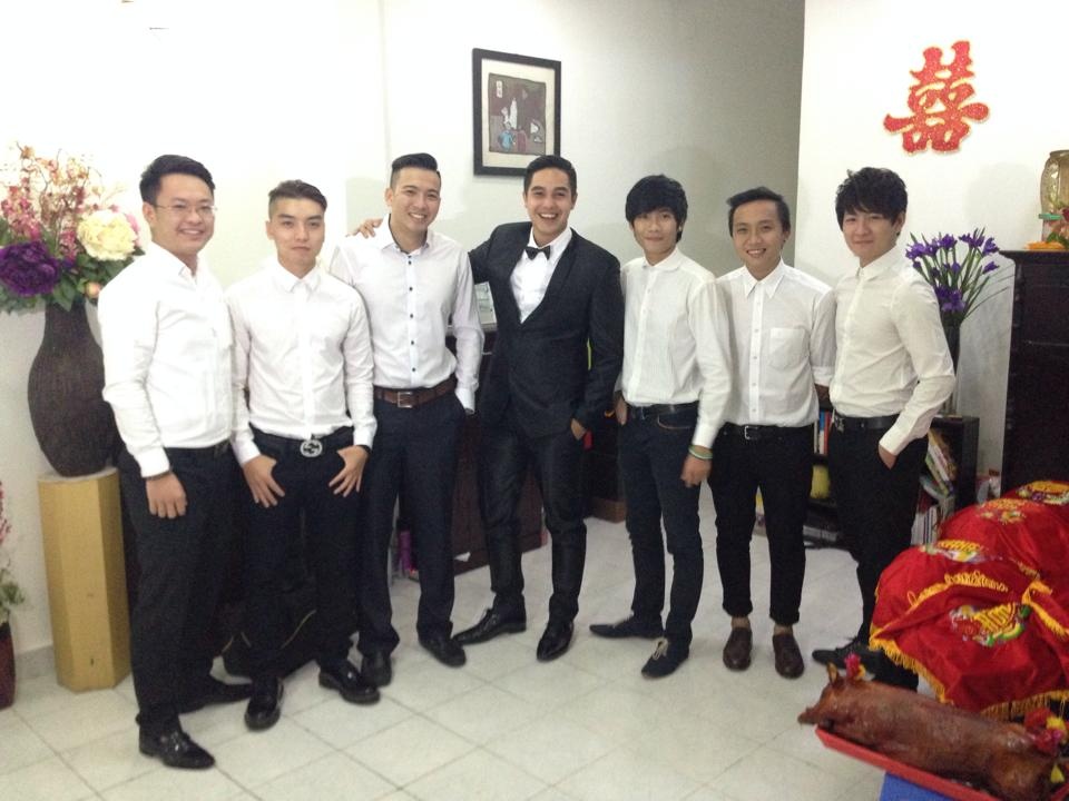 | Baggio bảnh bao bên dàn rể phụ trước giờ lên đường sang nhà gái ăn hỏi. |