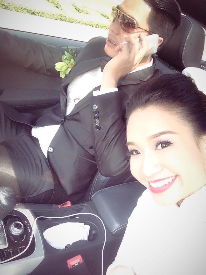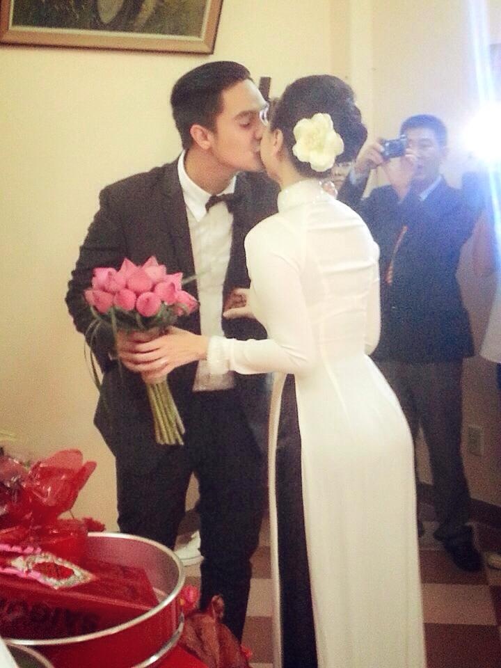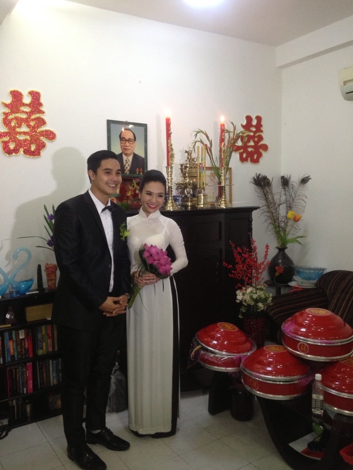 | Bận rộn với các thủ tục lễ nghi nhưng Quỳnh Trâm không quên chụp hình để chia sẻ trên trang cá nhân. Trong khi vợ mới cưới bận rộn chụp ảnh, Baggio lại tíu tít với các cuộc điện thoại. |