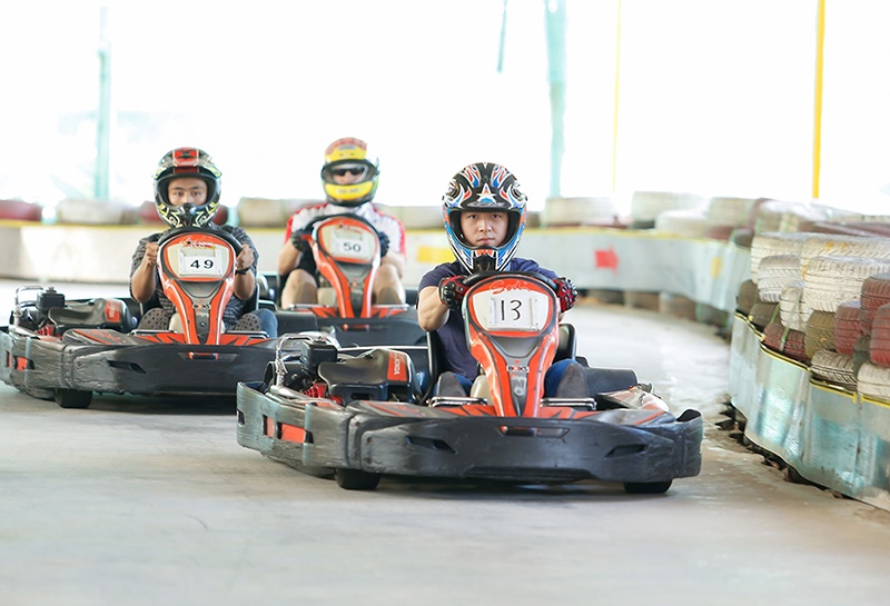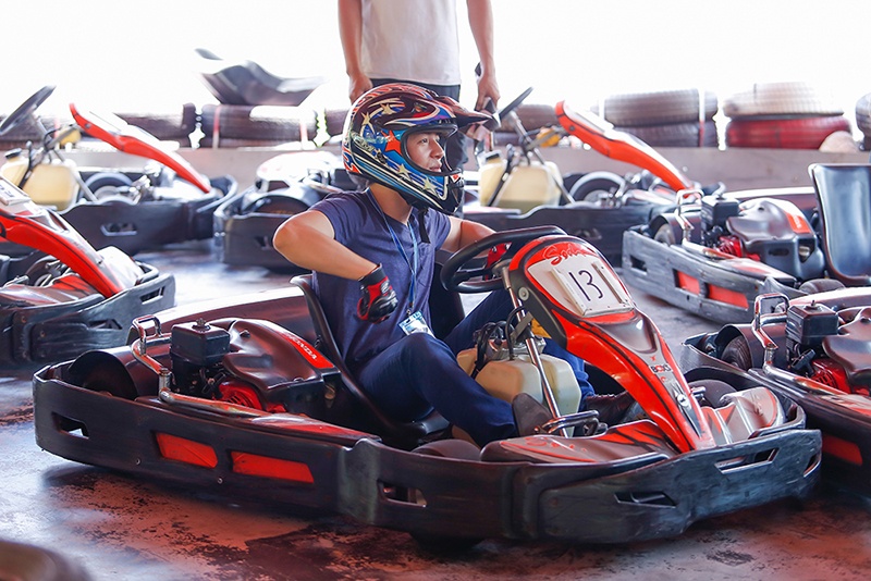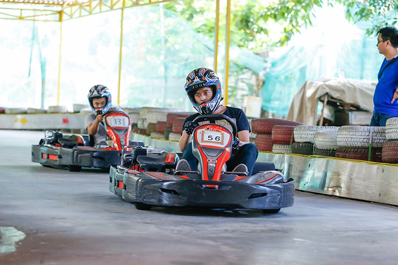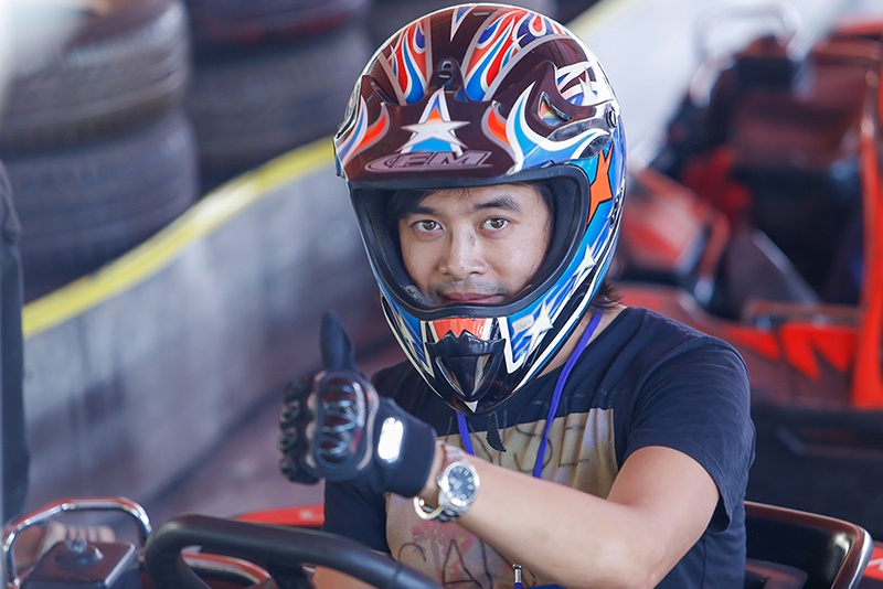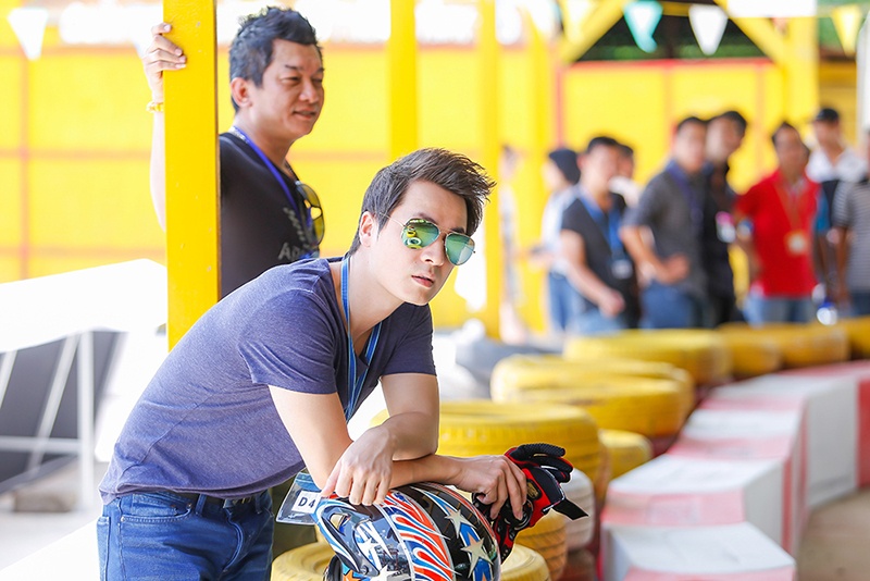 | Anh tỏ ra không kém cạnh Đăng Khôi khi điều khiển khá tốt xe trên đường đua. |