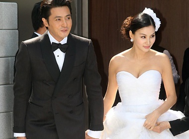 | Vợ chồng Jang Dong Gun trong ngày cưới cách đây hơn ba năm. |