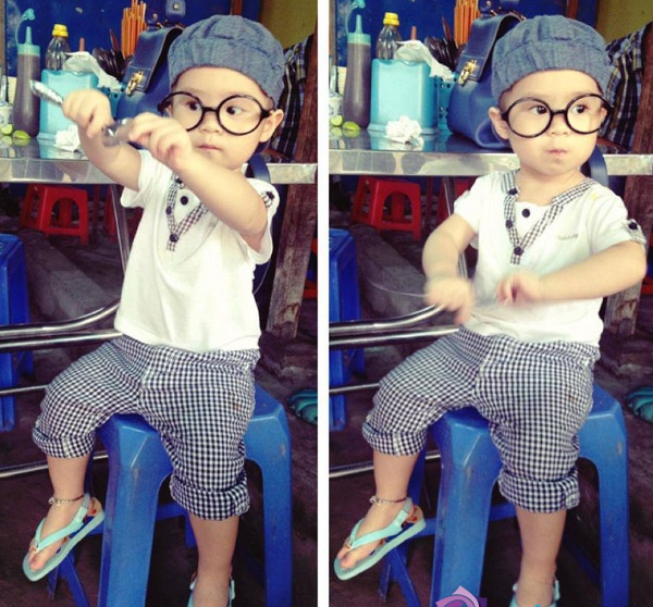 | Anh cả Rio ngày càng chững chạc và trông rất "cute" với quần xắn đến đầu gối và kính tròn đáng yêu |