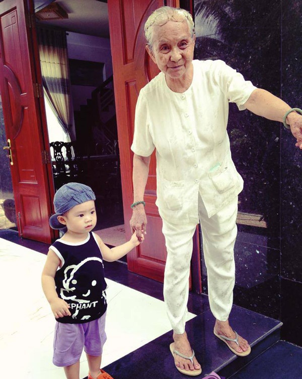 | Rio cầm tay dắt bà nội đi xuống cầu thang trông rất người lớn |