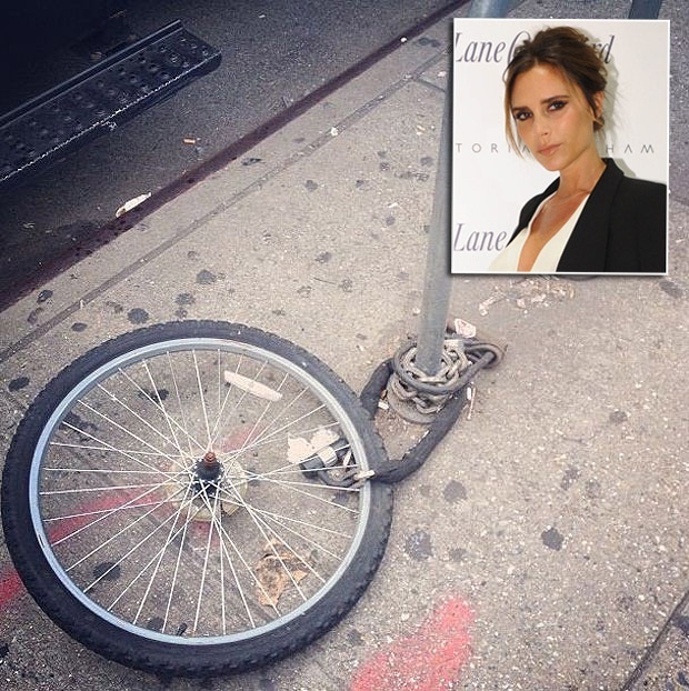 Để chuẩn bị cho tuần lễ thời trang New York, Vic đã đưa bé Harper lên đường sang Mỹ. Thế nhưng thật không may, nhà thiết kế 38 tuổi bất ngờ bị “sao quả tạ” rơi trúng đầu ở xứ cờ hoa khi một tên trộm “vui tính” cuỗm mất chiếc xe đạp dù cô đã cẩn thận khóa kỹ càng vào chân cột.