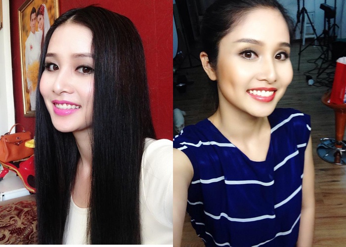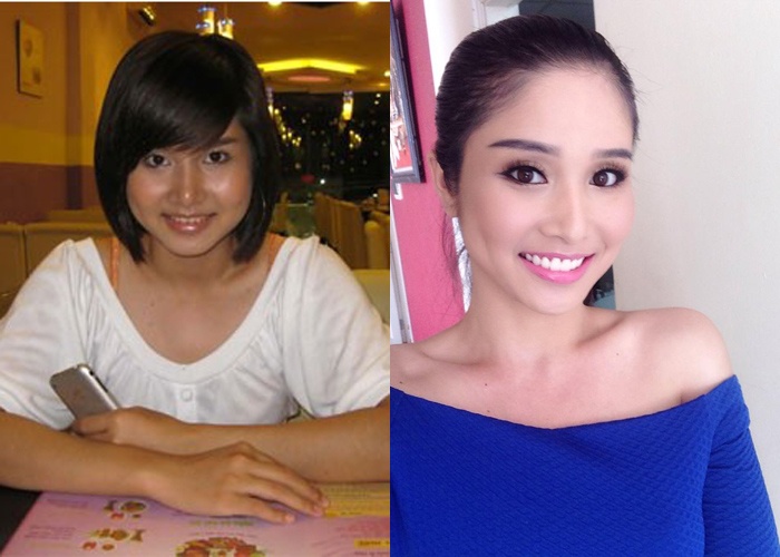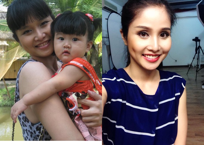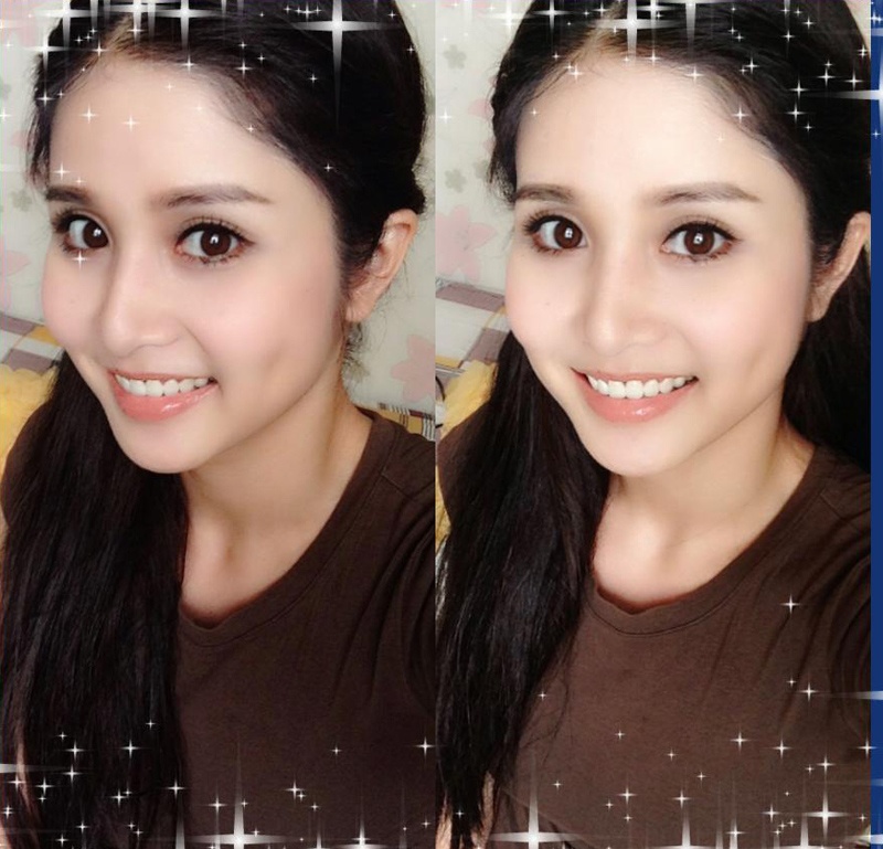 | Để có nụ cười không hở lợi, Thảo Trang phải phẫu thuật thẩm mỹ vùng lợi hai lần. Hình bên trái là lần thứ nhất nhưng khi cười to vẫn bị hở lợi. Do vậy, cô quyết định tìm đến nha sĩ lần nữa để có nụ cười hoàn chỉnh như hình bên phải. |