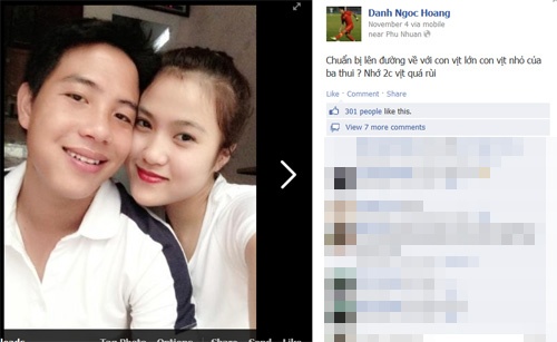 Mới đây, trên Facebook cá nhân, tuyển thủ U23 Hoàng Danh Ngọc liên tiếp có những dòng chia sẻ và hình ảnh làm dậy lên nghi án cô bạn gái xinh đẹp Thanh Thảo đang mang bầu.