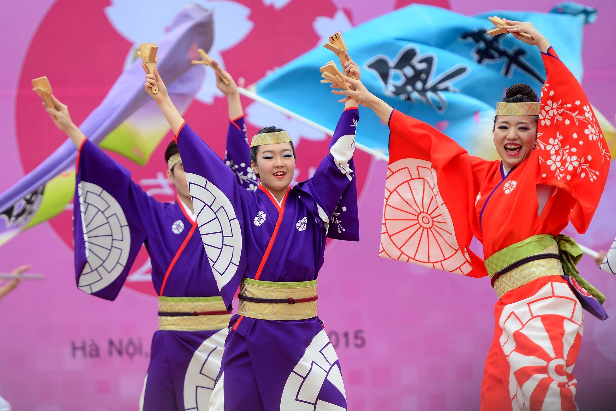 | Trên sân khấu cũng diễn ra hàng loạt các hoạt động văn hóa do các nghệ sĩ Việt Nam và Nhật Bản thể hiện. Trong đó nổi bật là điệu múa truyền thống Yosakoi do 13 nhóm, CLB tại Việt Nam biểu diễn cùng của đội khách mời mang tên Maika đến từ Tokyo. |