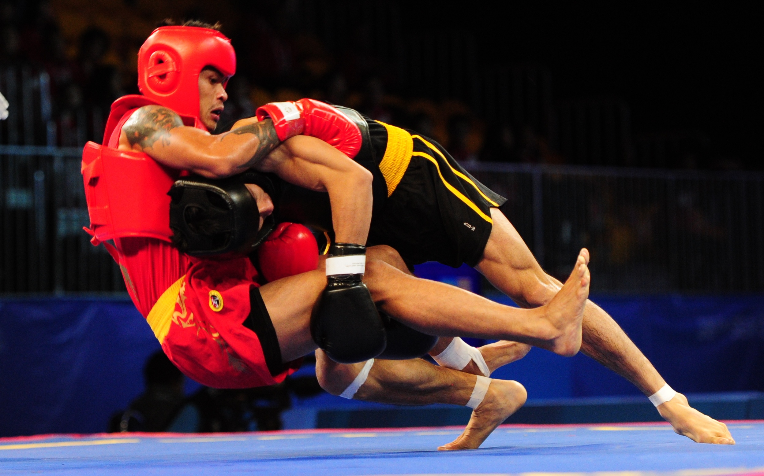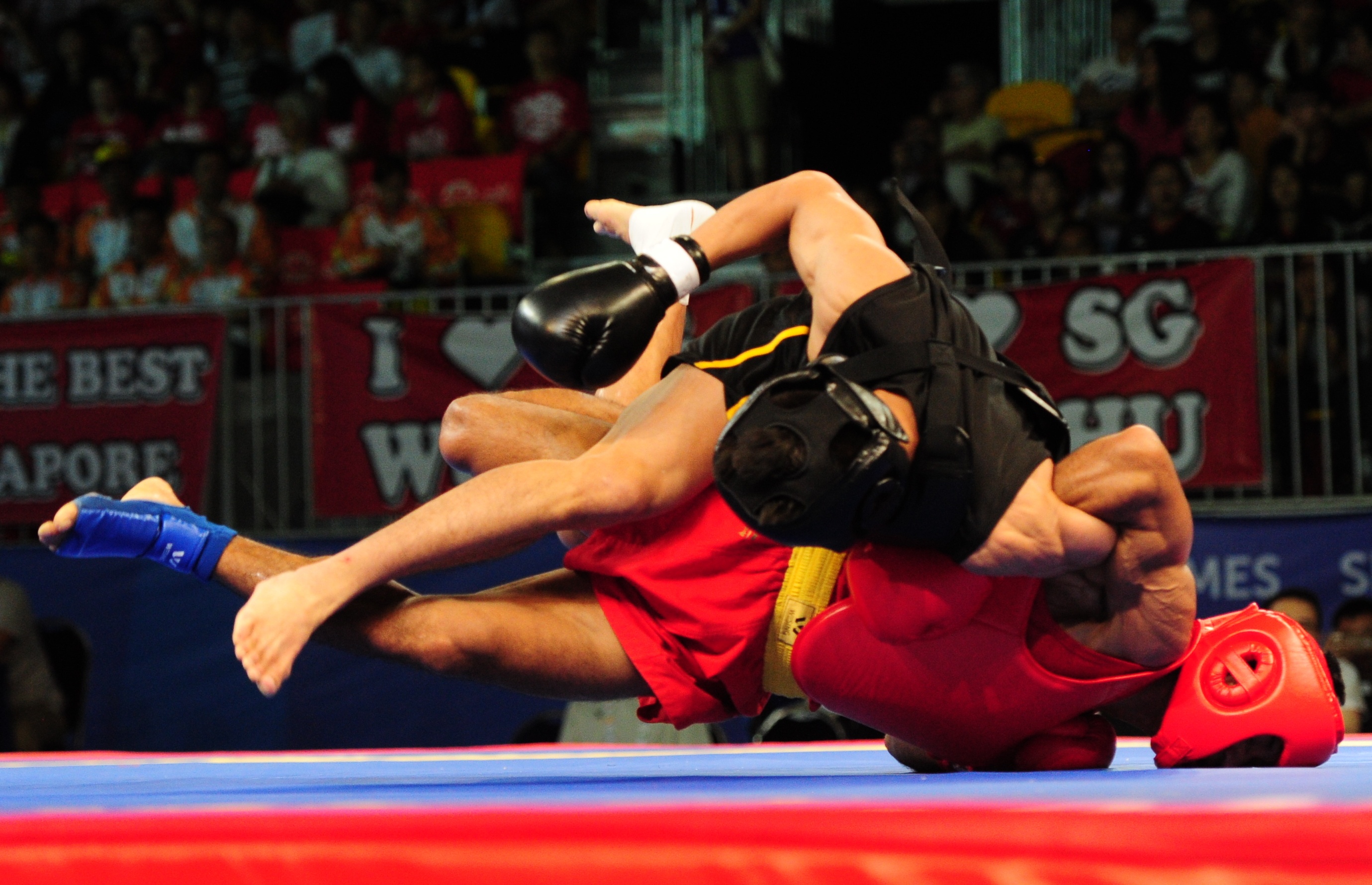 | Nguyễn Văn Tài khóa chân Tun Kyaw Lin không cho đối thủ cơ hội phản đòn. |